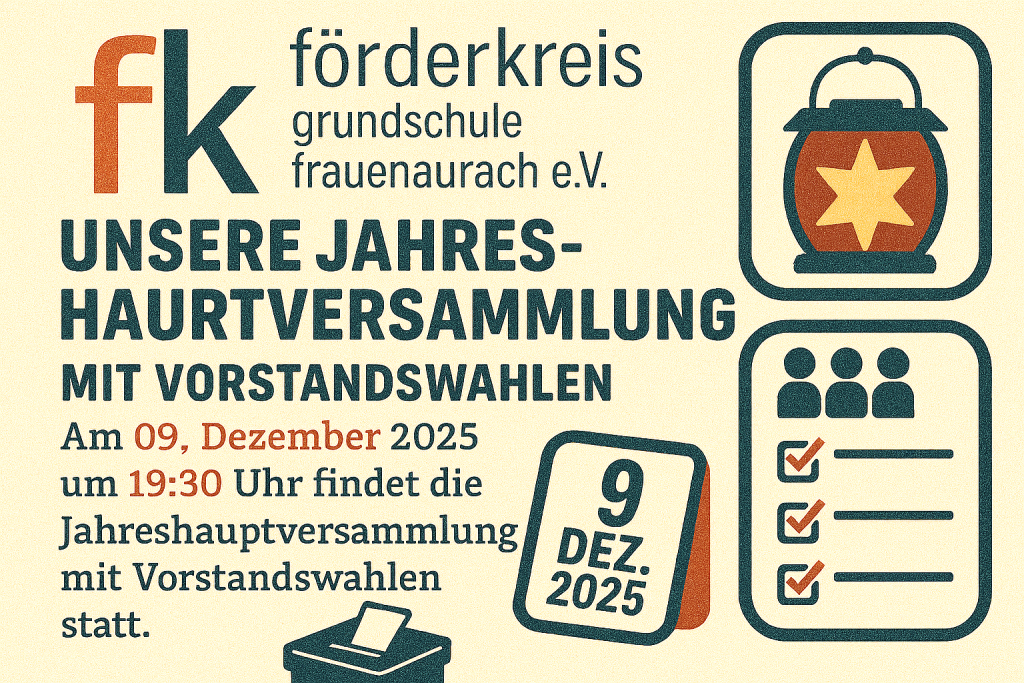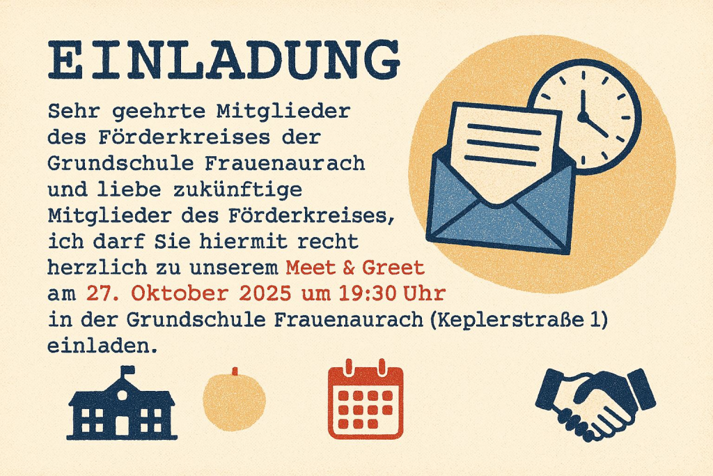 wir laden Sie ganz herzlich zu unserem Meet & Greet am Montag, den 27. Oktober 2025 um 19:30 Uhr in der Grundschule Frauenaurach ein.